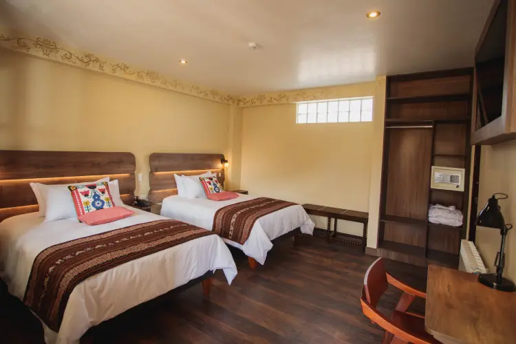 Nuestra habitación Doble Delux es perfecta para todos aquellos viajeros que se aventuran en pareja, con la persona que más quieren y quieren compartir momentos inolvidables, cuenta con una habitación de 26 metros cuadrados aproximadamente, baño privado dentro de la habitación y agua caliente las 24 horas del día. Además, cuenta con TV Cable en la habitación; una excelente cobertura de señal Wi-Fi dentro de la habitación y en todo nuestro hotel en Cusco, un armario para dejar bien organizadas sus pertenencias, mesas de noche y vistas al jardín.